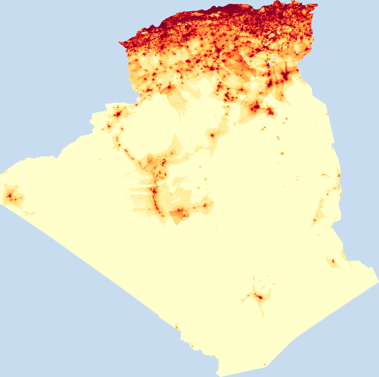 Population density map of Algeria showing the distribution of people per square kilometer. View all Algeria statistics →