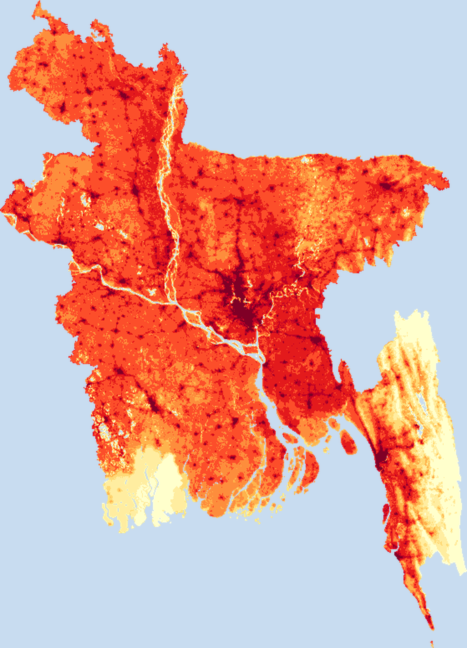 Population density map of Bangladesh showing the distribution of people per square kilometer. View all Bangladesh statistics →