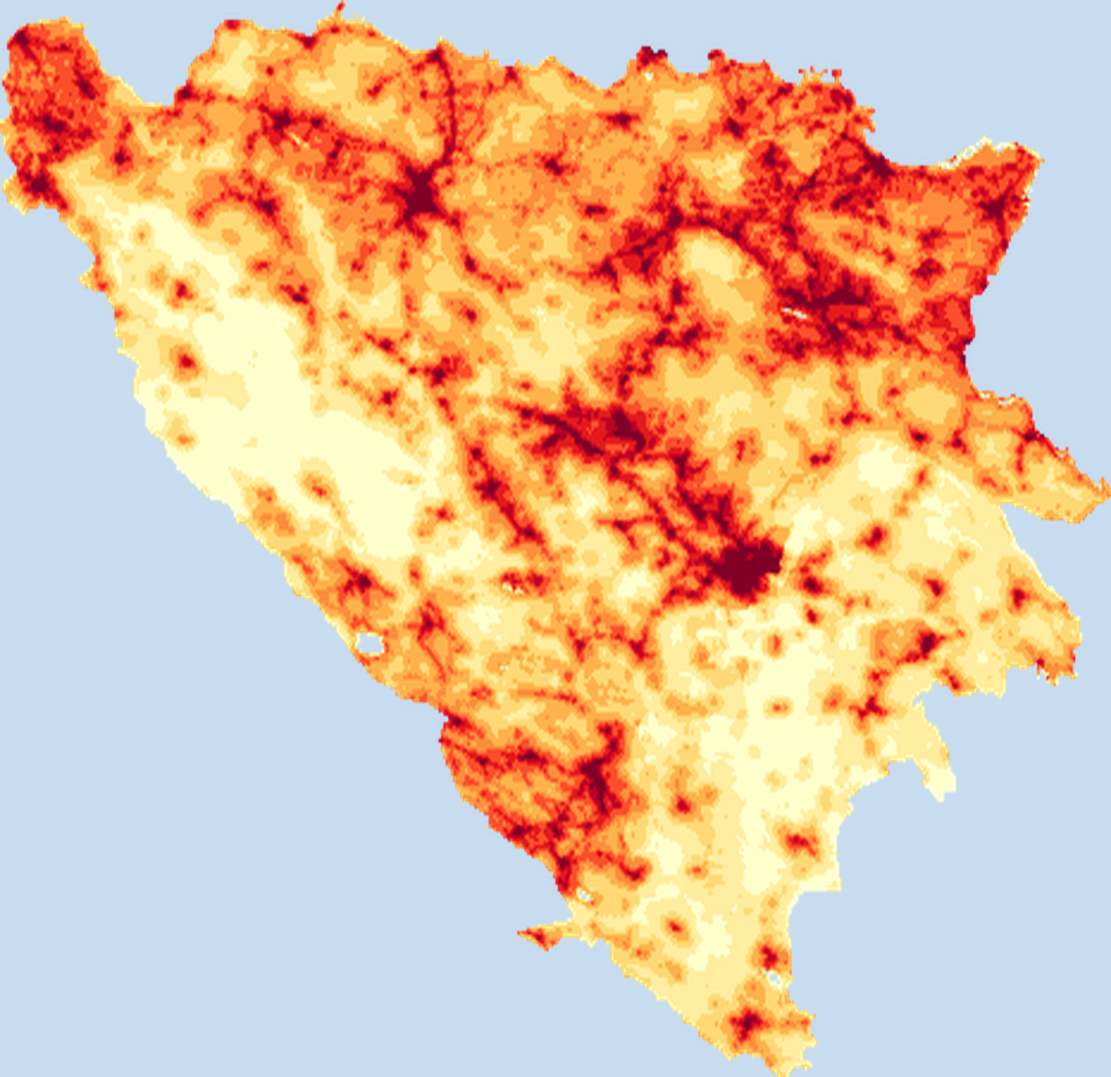 Population density map of Bosnia and Herzegovina showing the distribution of people per square kilometer. View all Bosnia and Herzegovina statistics →