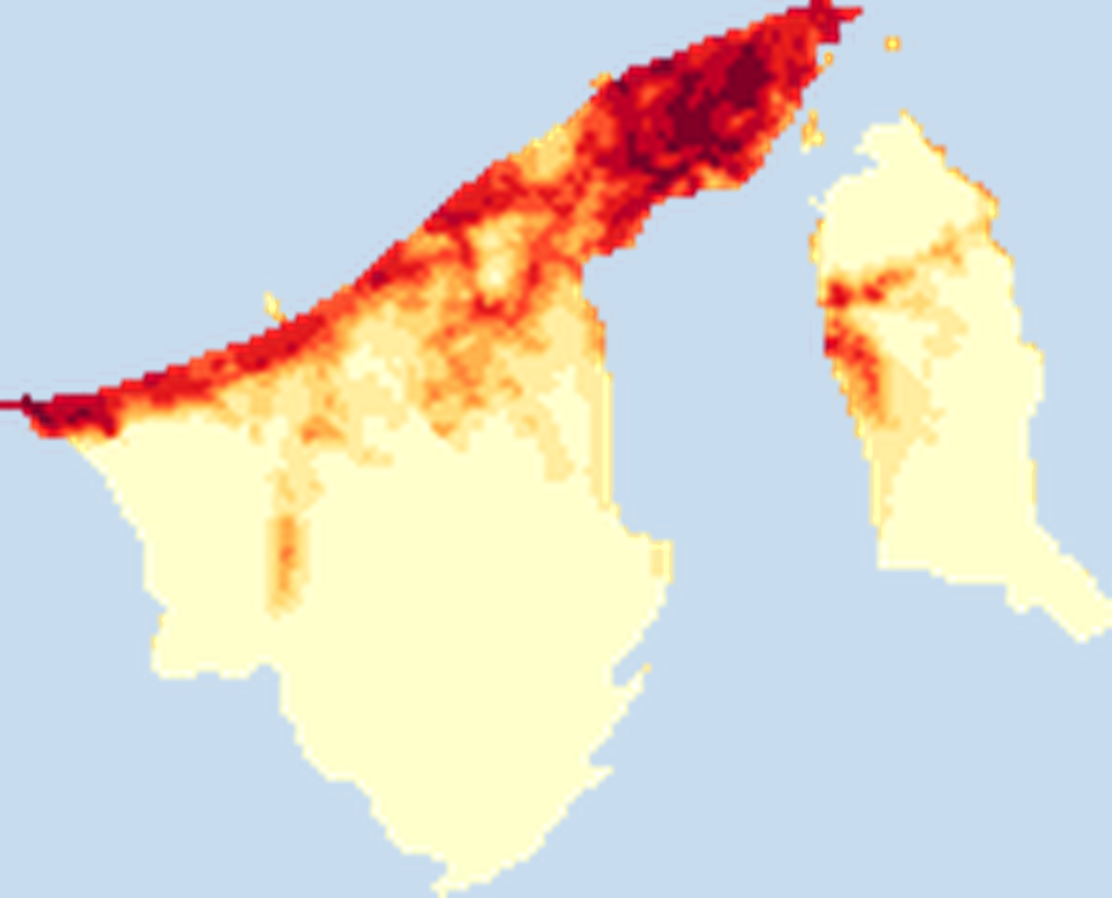 Population density map of Brunei Darussalam showing the distribution of people per square kilometer. View all Brunei Darussalam statistics →