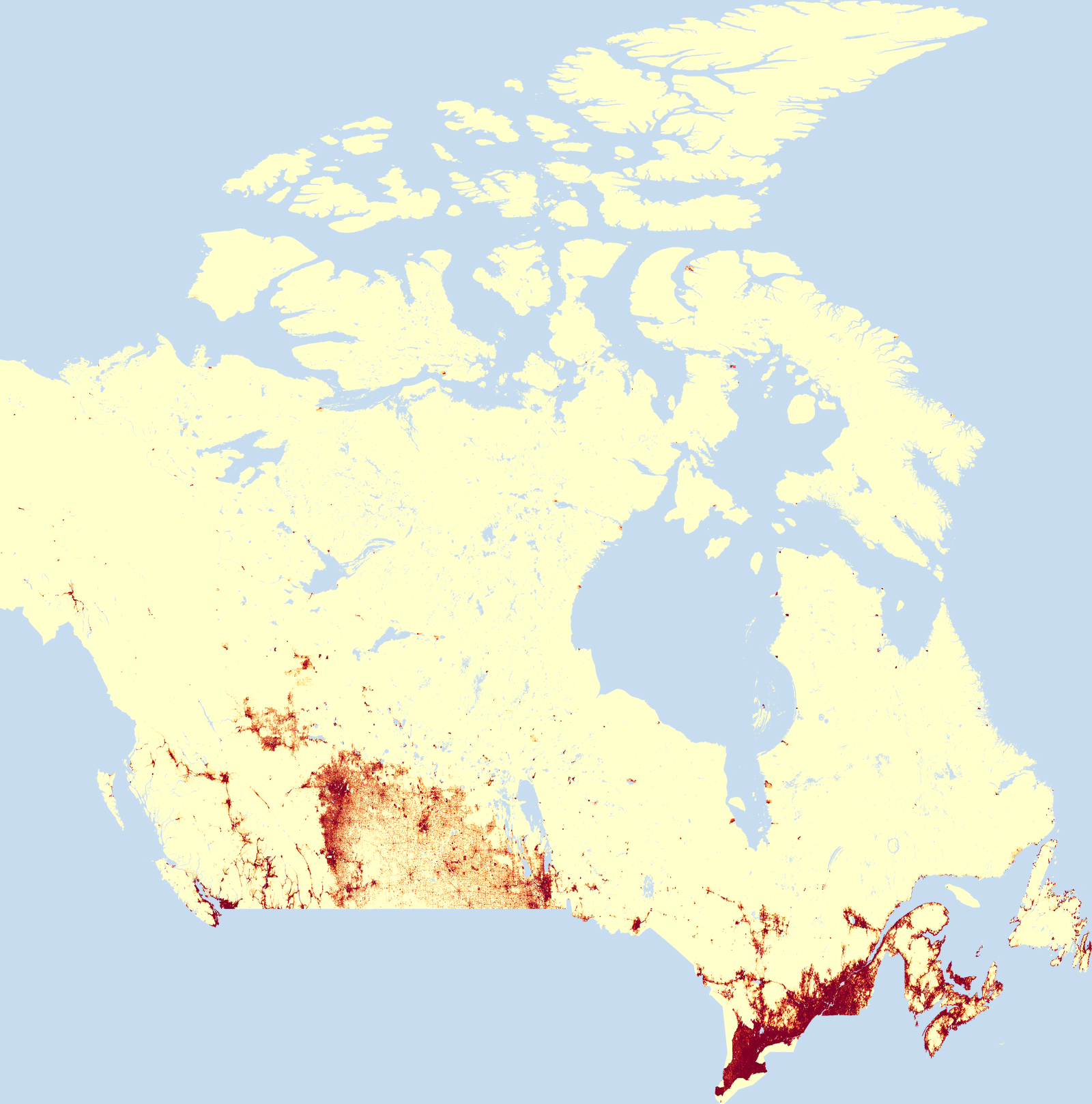 Population density map of Canada showing the distribution of people per square kilometer. View all Canada statistics →