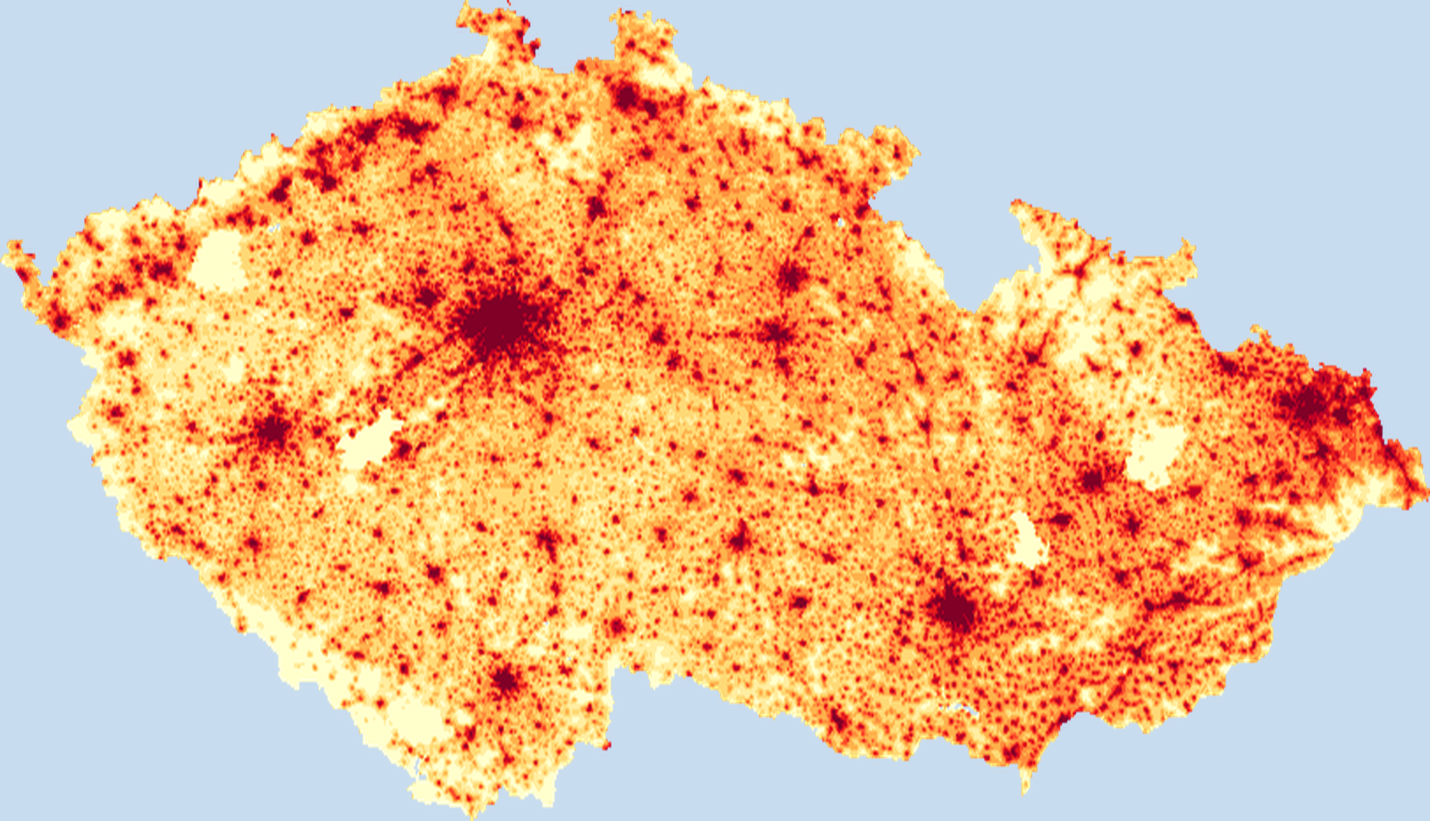 Population density map of Czechia showing the distribution of people per square kilometer. View all Czechia statistics →