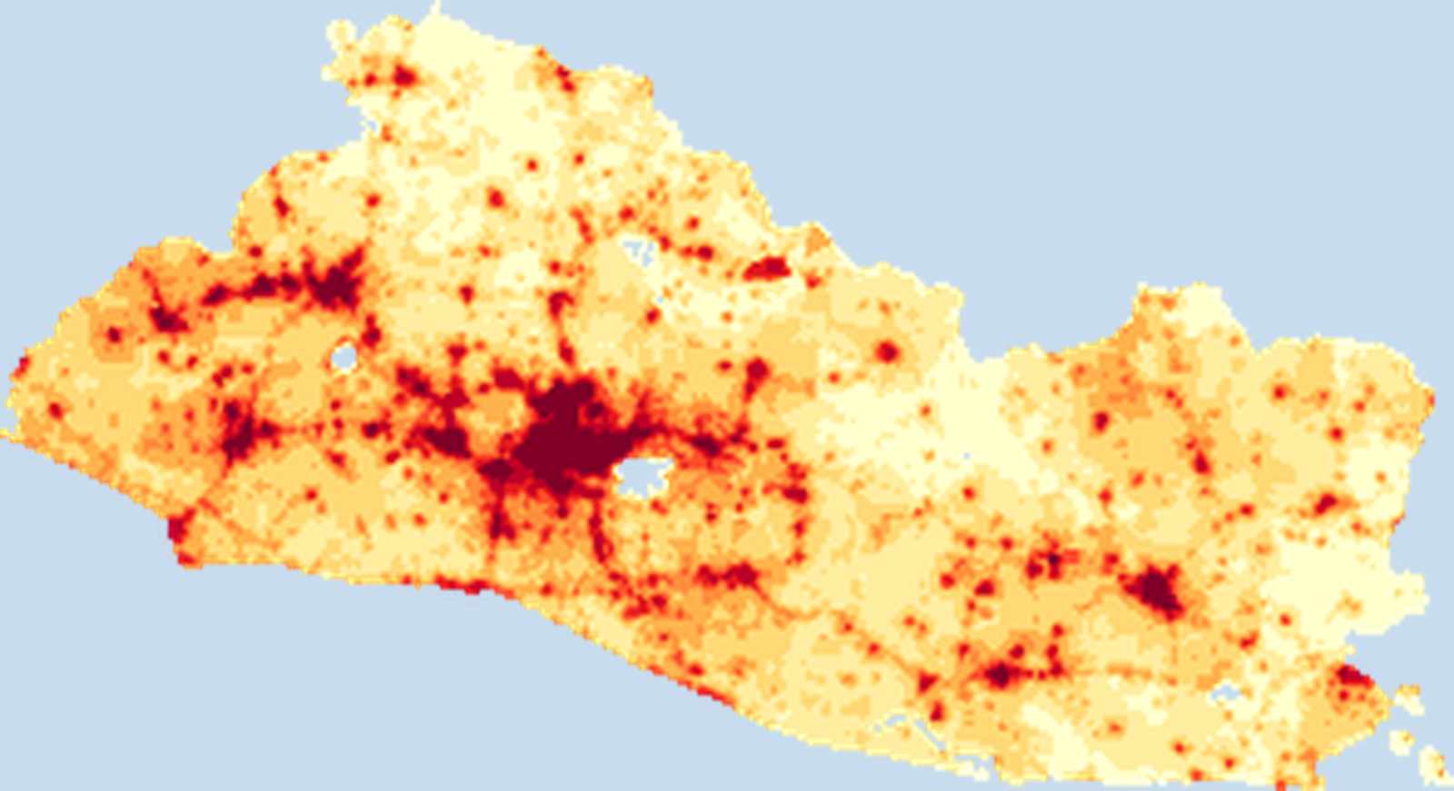 Population density map of El Salvador showing the distribution of people per square kilometer. View all El Salvador statistics →