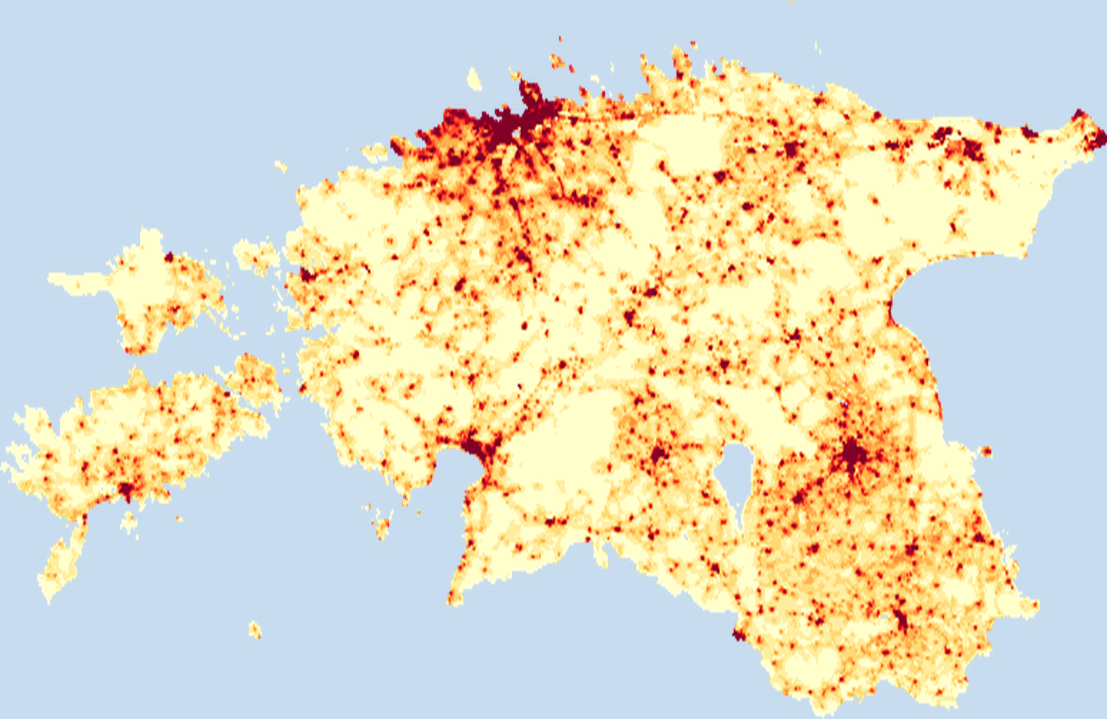 Population density map of Estonia showing the distribution of people per square kilometer. View all Estonia statistics →