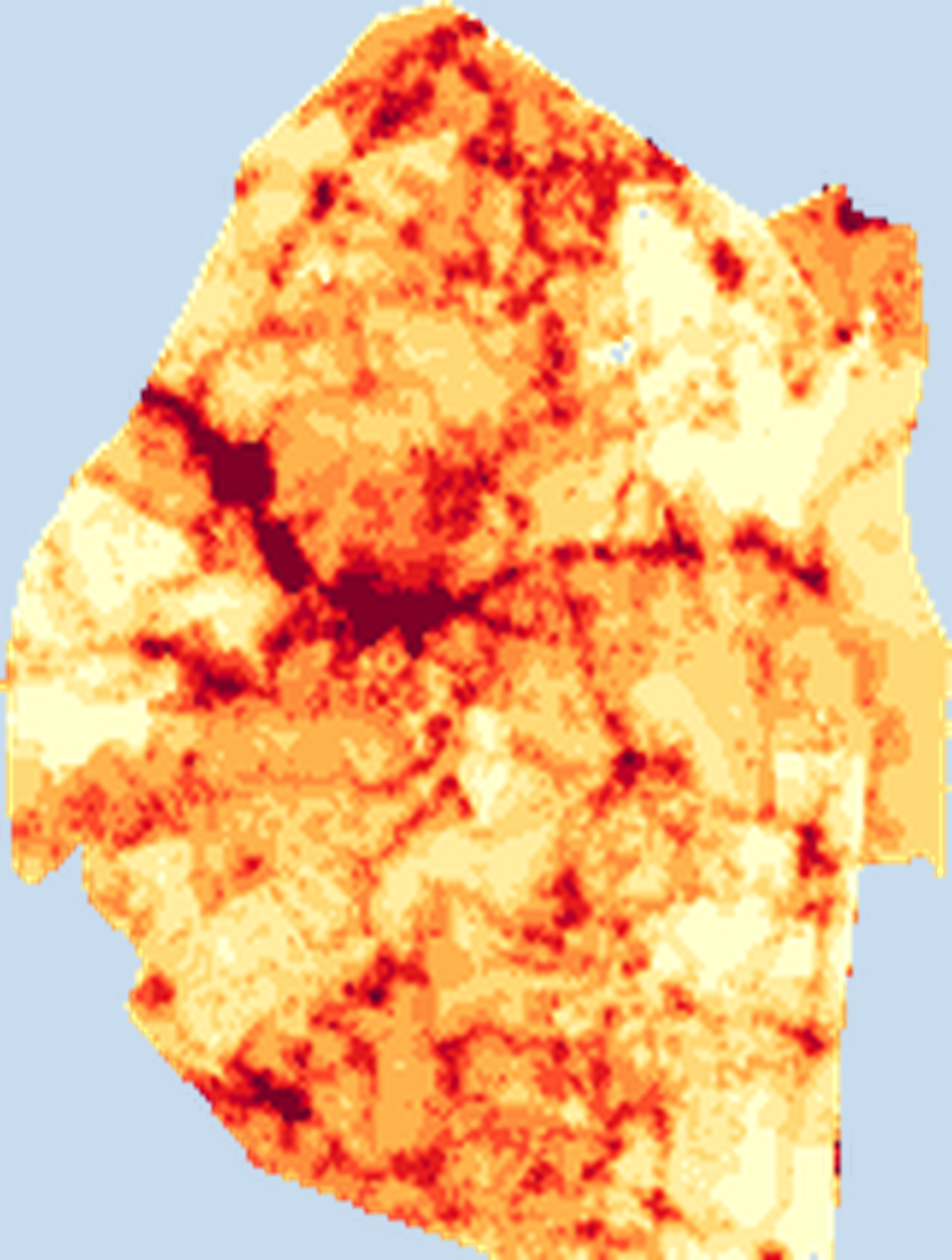 Population density map of Eswatini showing the distribution of people per square kilometer. View all Eswatini statistics →