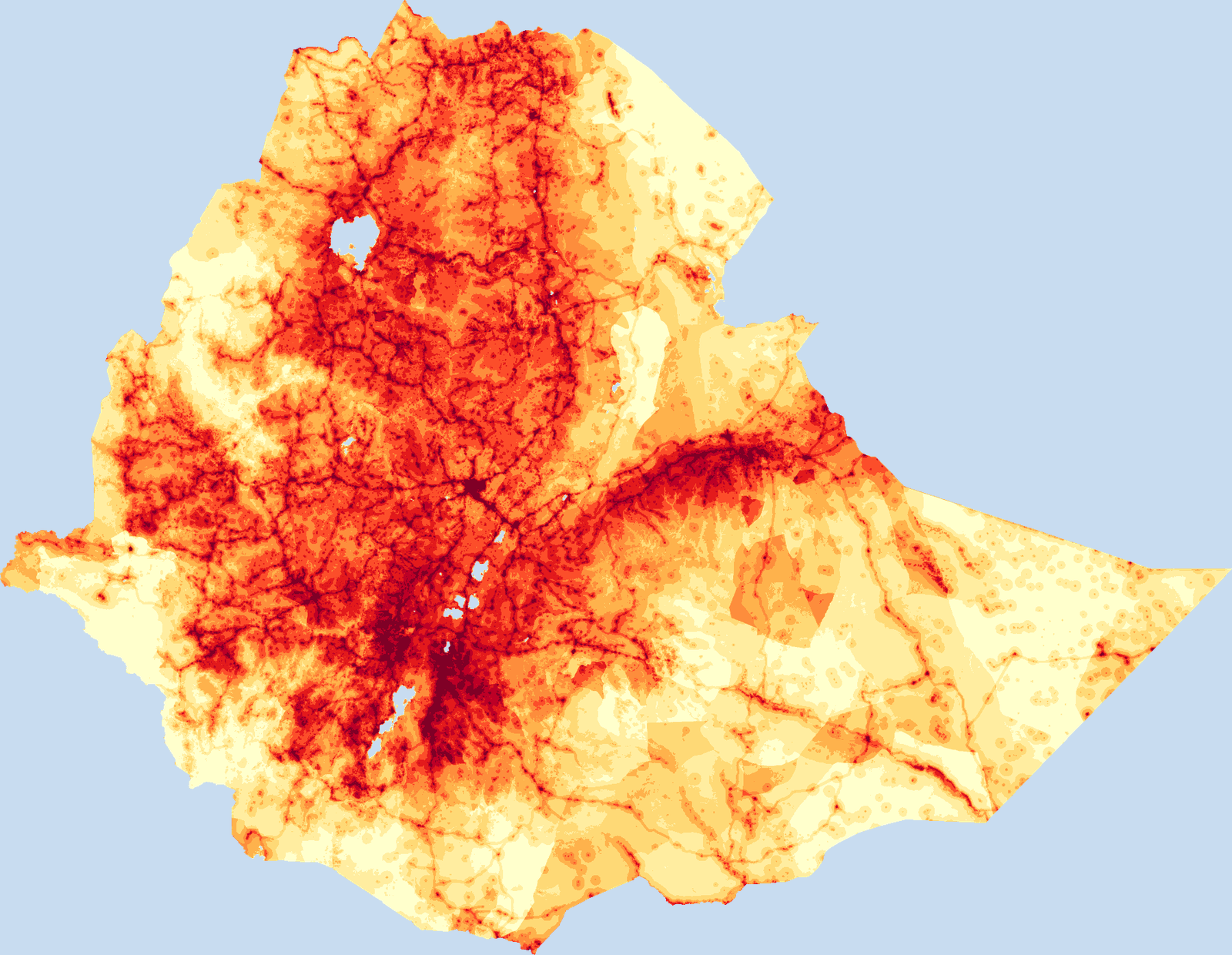 Population density map of Ethiopia showing the distribution of people per square kilometer. View all Ethiopia statistics →
