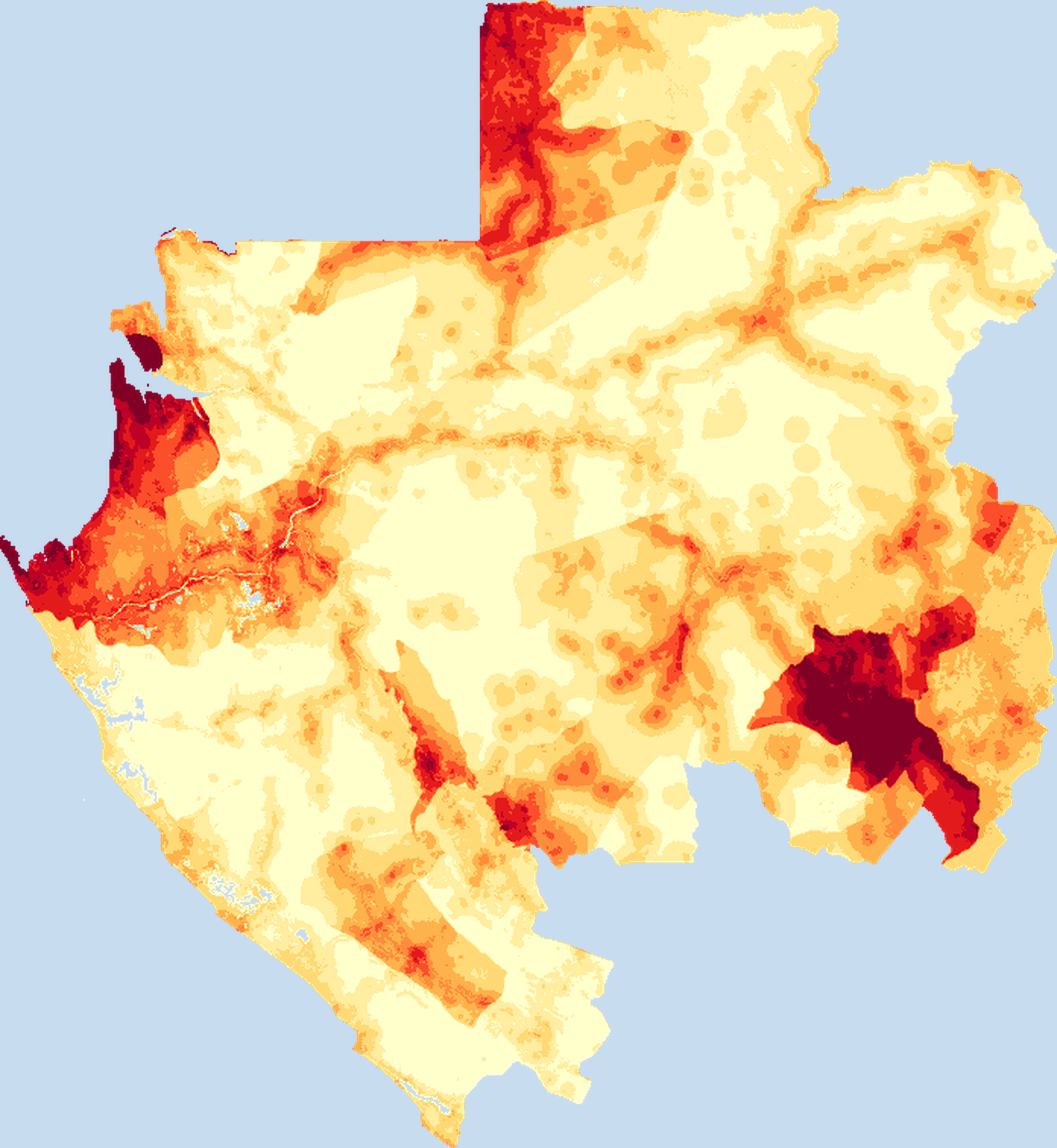 Population density map of Gabon showing the distribution of people per square kilometer. View all Gabon statistics →