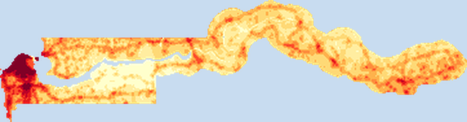 Population density map of Gambia, The showing the distribution of people per square kilometer. View all Gambia, The statistics →