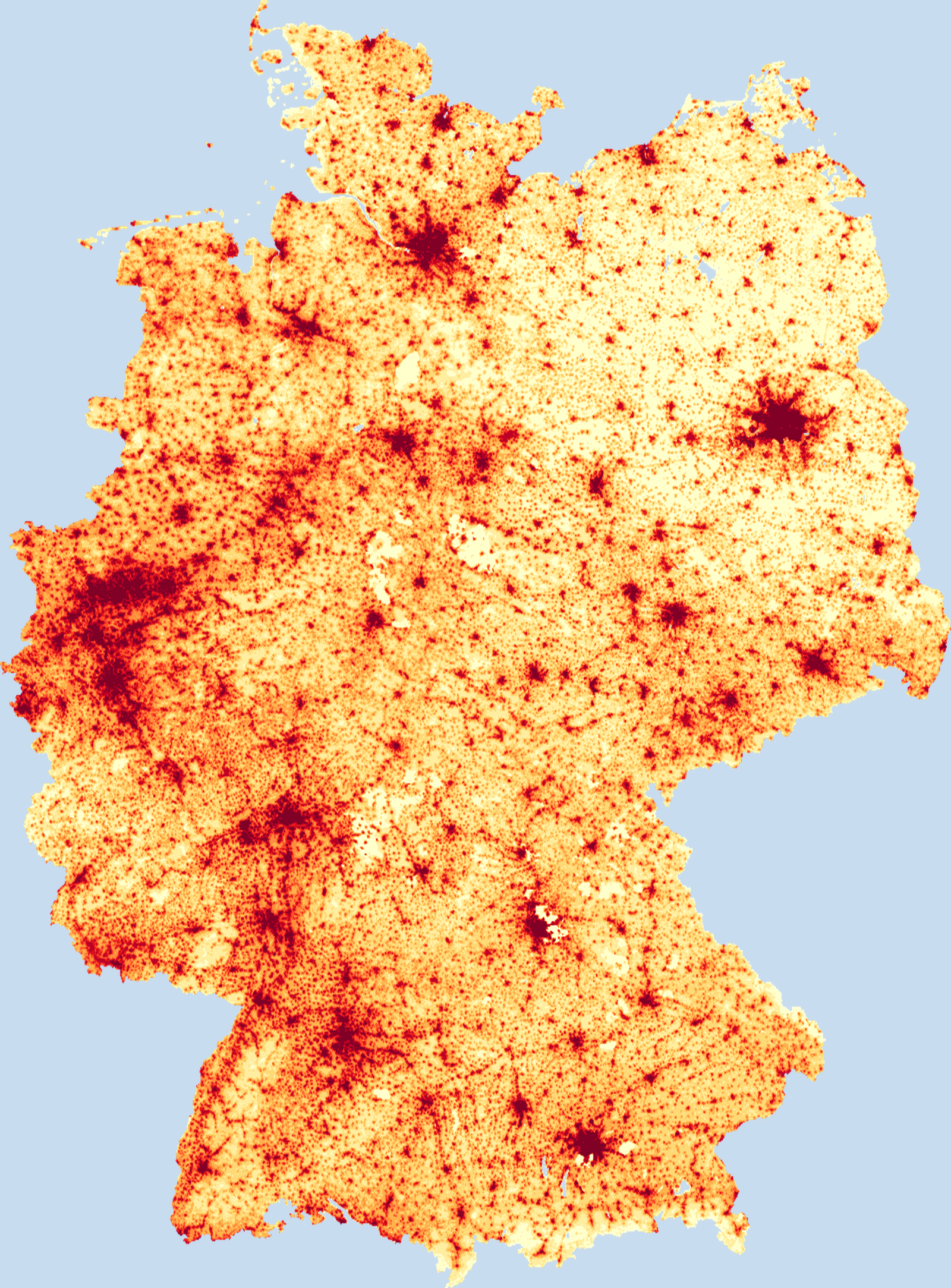 Population density map of Germany showing the distribution of people per square kilometer. View all Germany statistics →