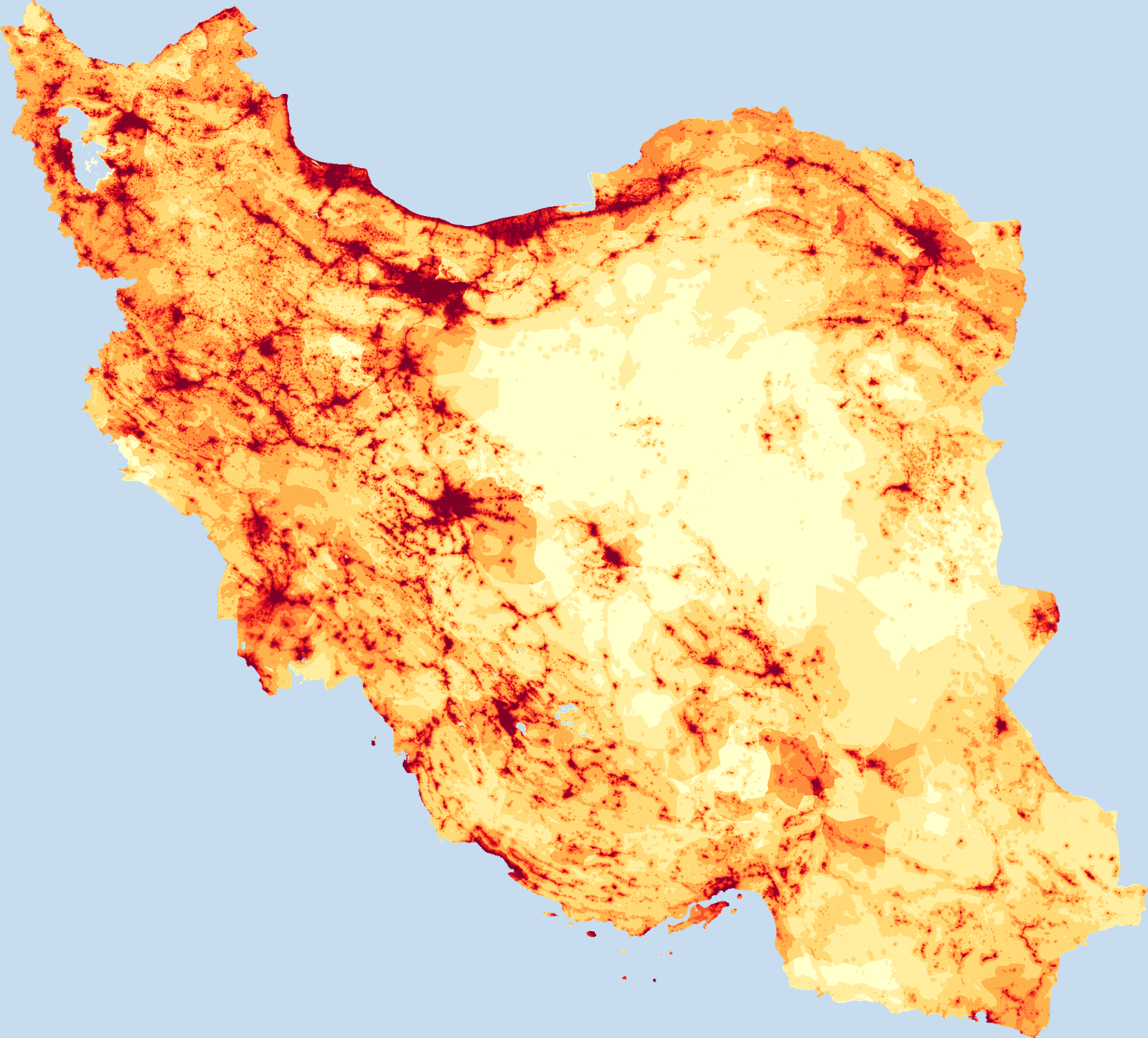 Population density map of Iran, Islamic Rep. showing the distribution of people per square kilometer. View all Iran, Islamic Rep. statistics →