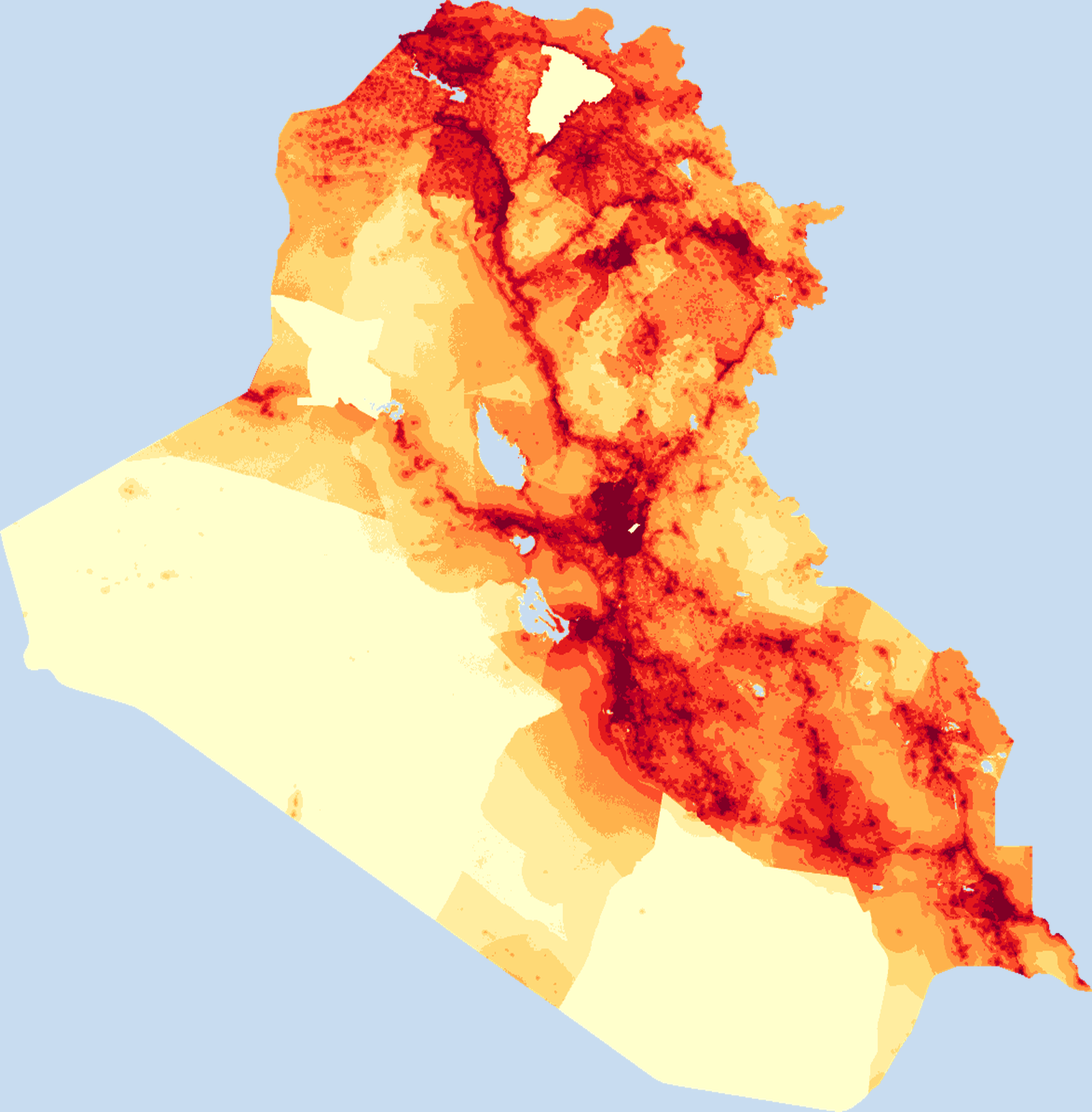 Population density map of Iraq showing the distribution of people per square kilometer. View all Iraq statistics →