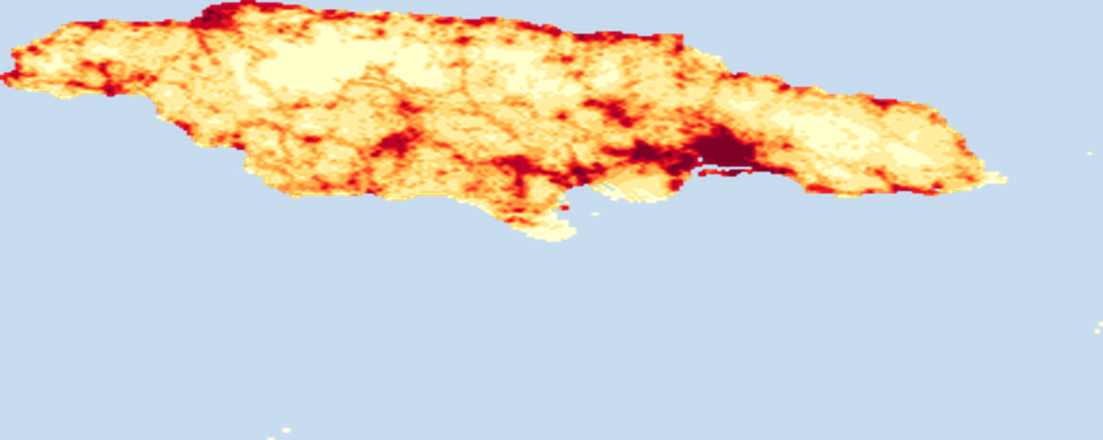 Population density map of Jamaica showing the distribution of people per square kilometer. View all Jamaica statistics →