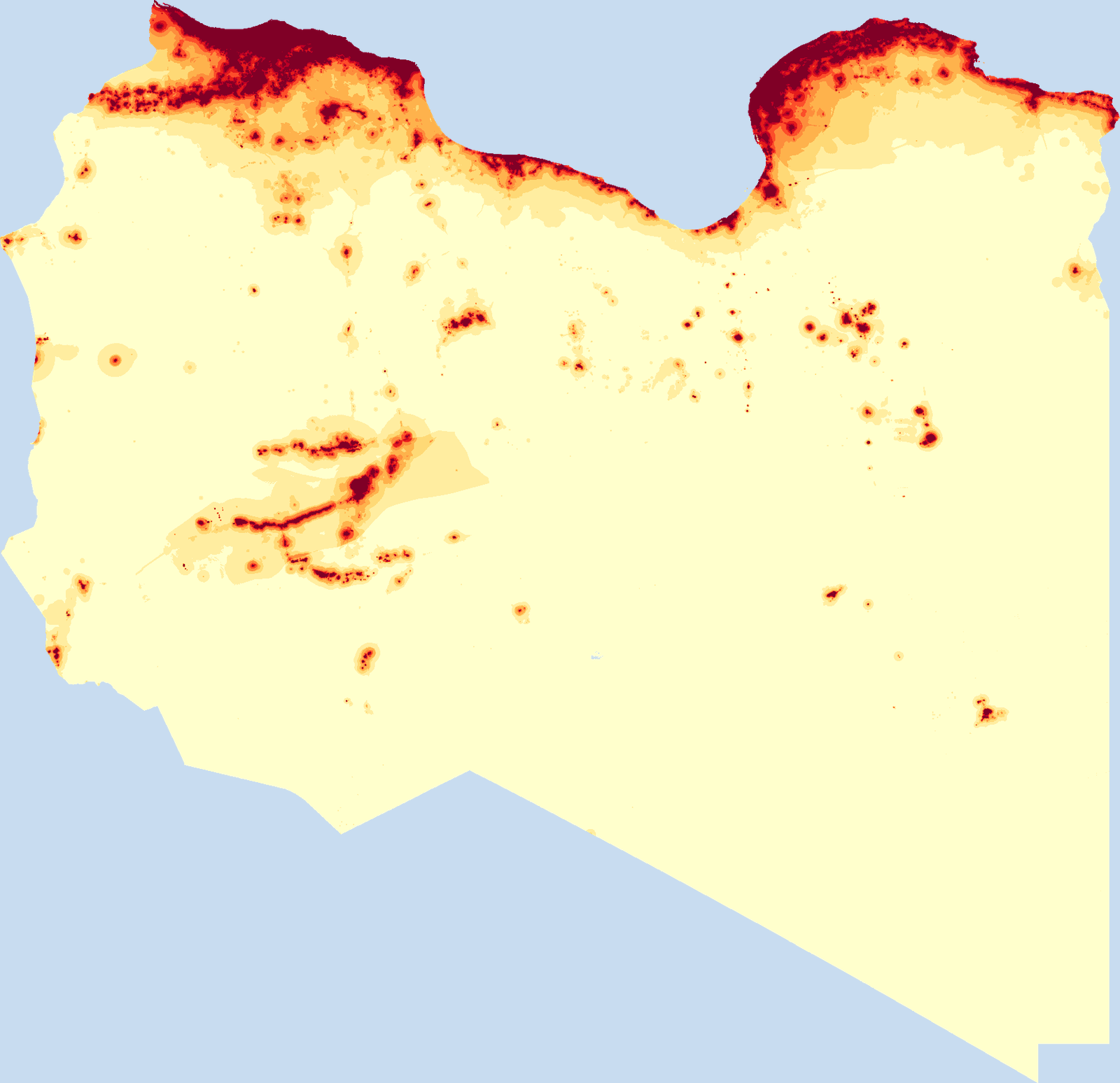 Population density map of Libya showing the distribution of people per square kilometer. View all Libya statistics →