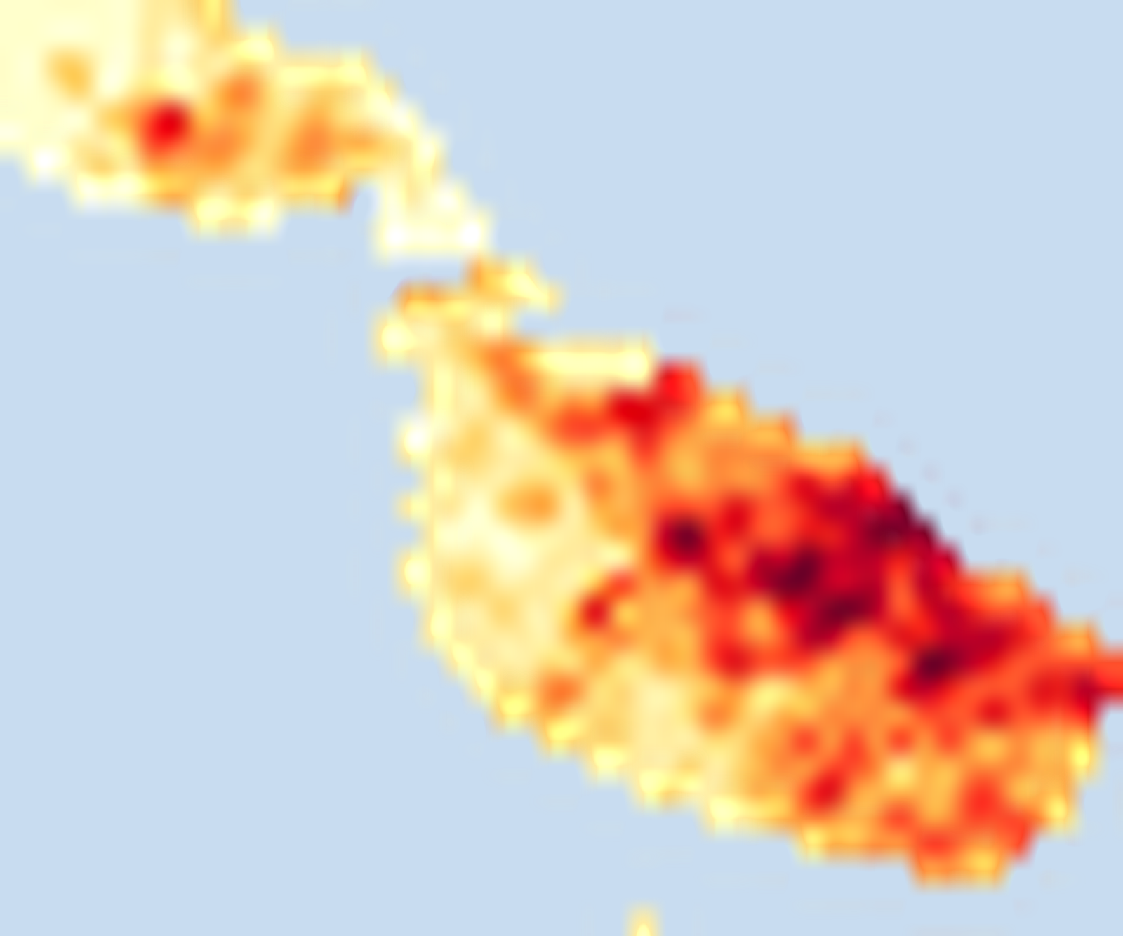 Population density map of Malta showing the distribution of people per square kilometer. View all Malta statistics →