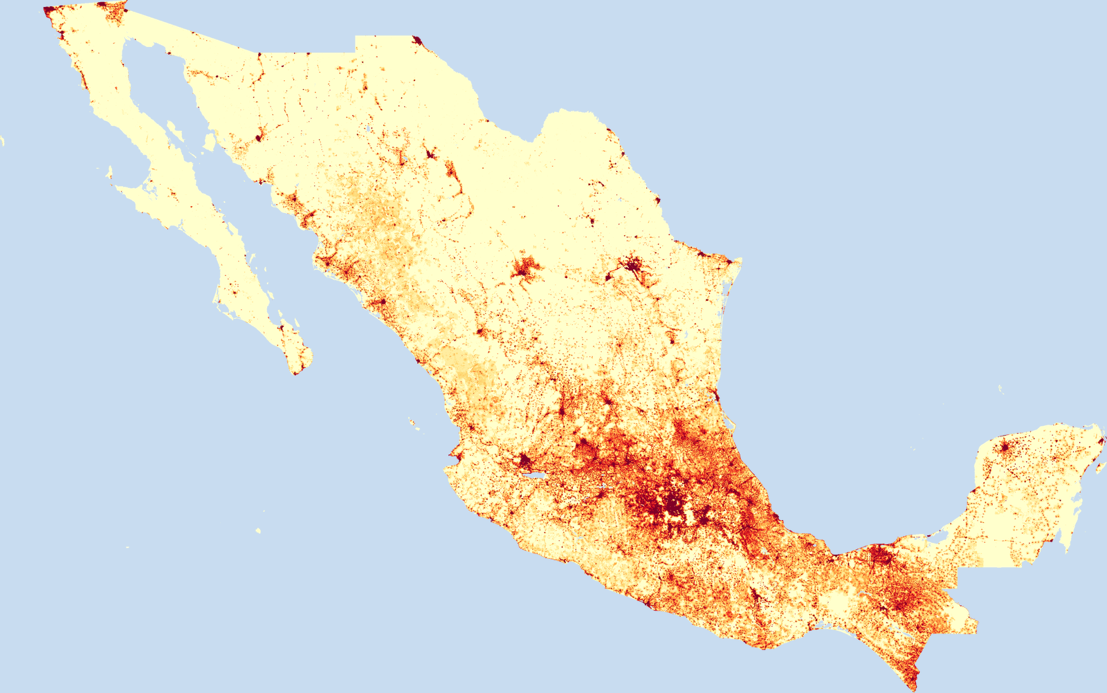 Population density map of Mexico showing the distribution of people per square kilometer. View all Mexico statistics →