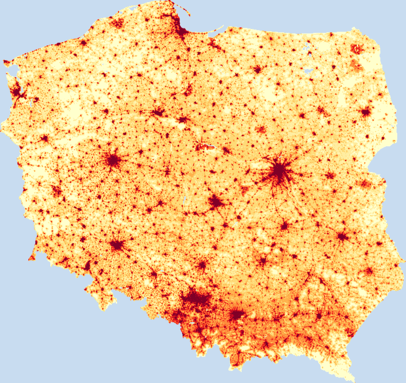 Population density map of Poland showing the distribution of people per square kilometer. View all Poland statistics →