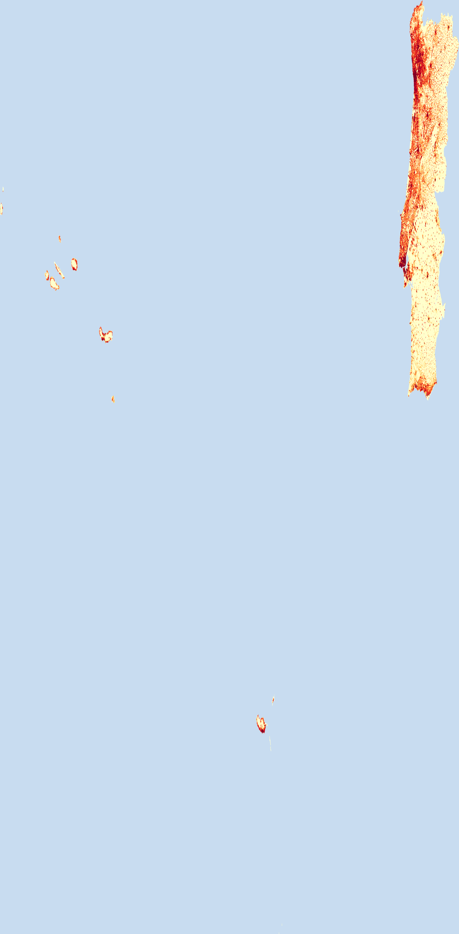 Population density map of Portugal showing the distribution of people per square kilometer. View all Portugal statistics →