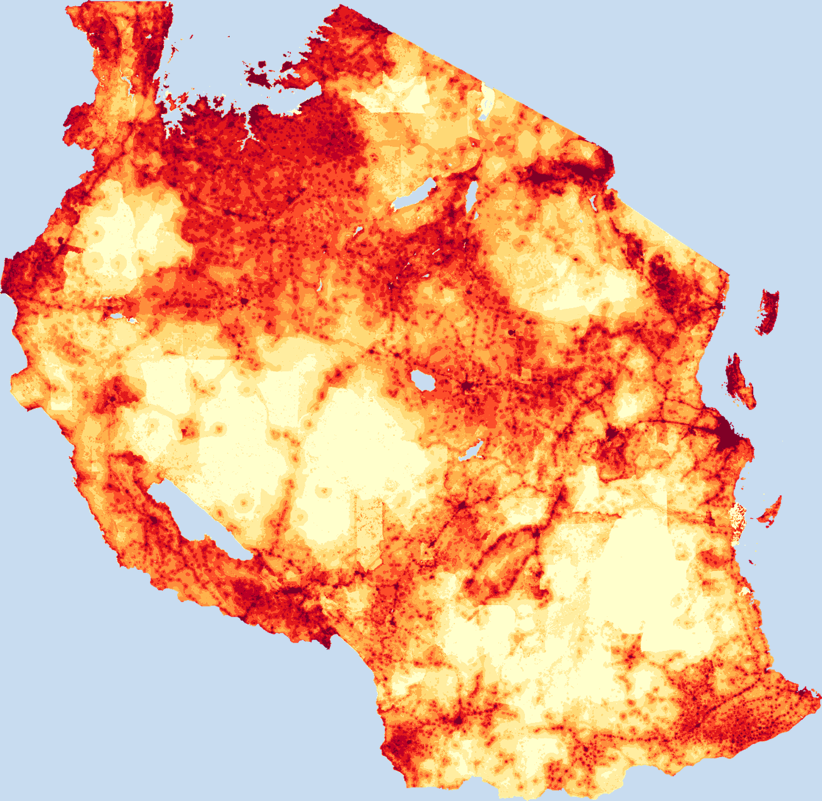Population density map of Tanzania showing the distribution of people per square kilometer. View all Tanzania statistics →