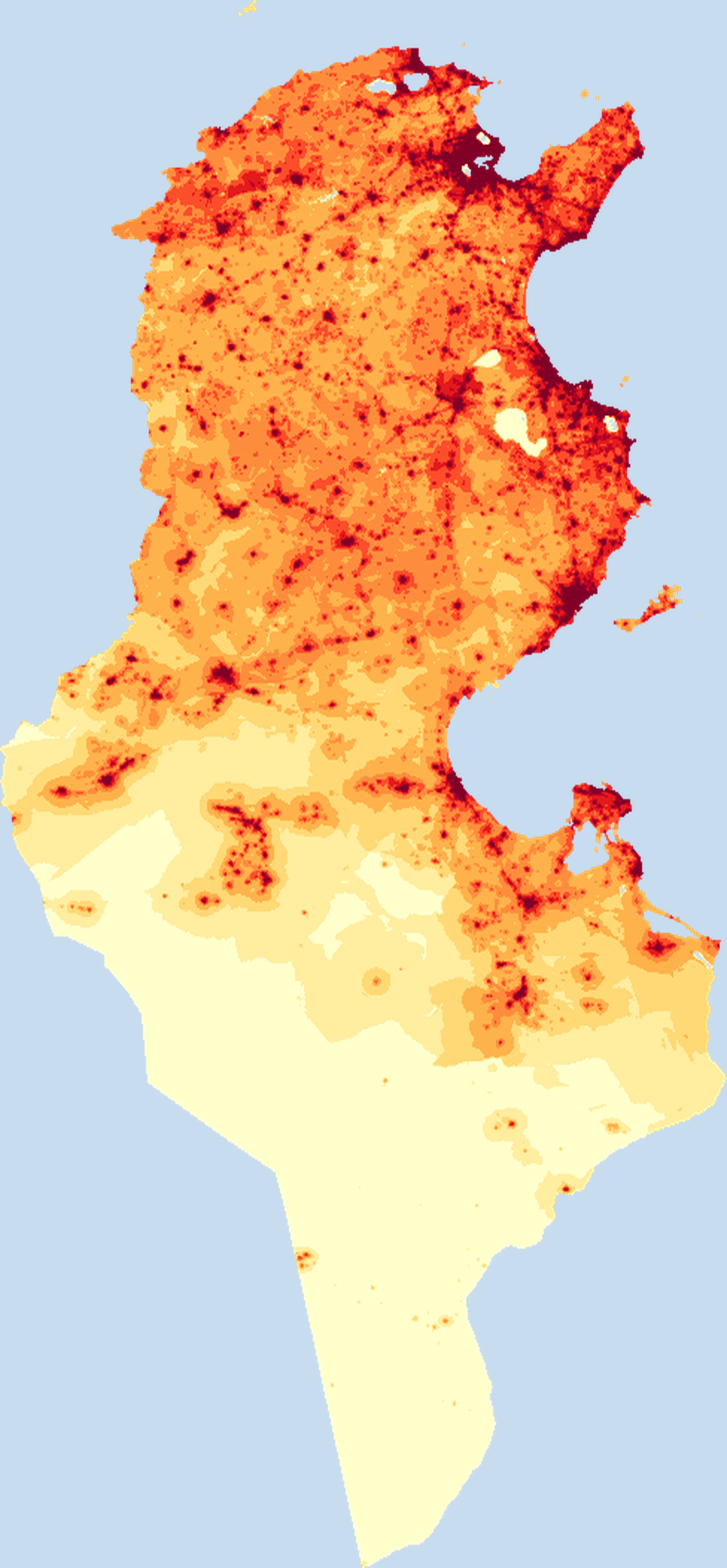 Population density map of Tunisia showing the distribution of people per square kilometer. View all Tunisia statistics →