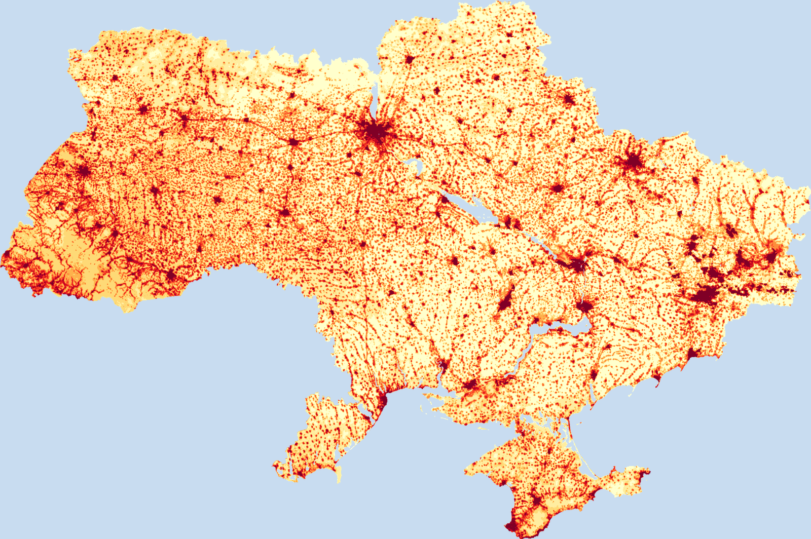 Population density map of Ukraine showing the distribution of people per square kilometer. View all Ukraine statistics →