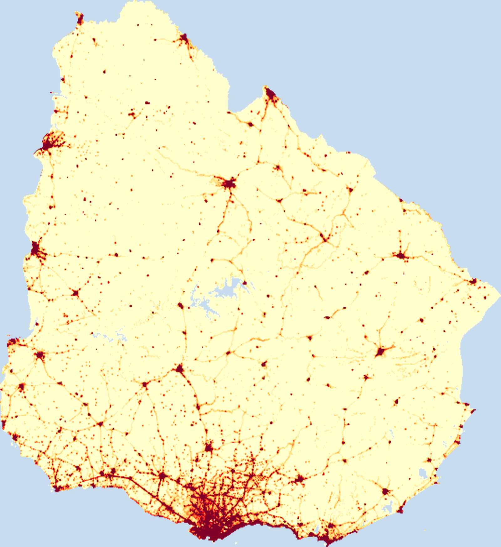Population density map of Uruguay showing the distribution of people per square kilometer. View all Uruguay statistics →